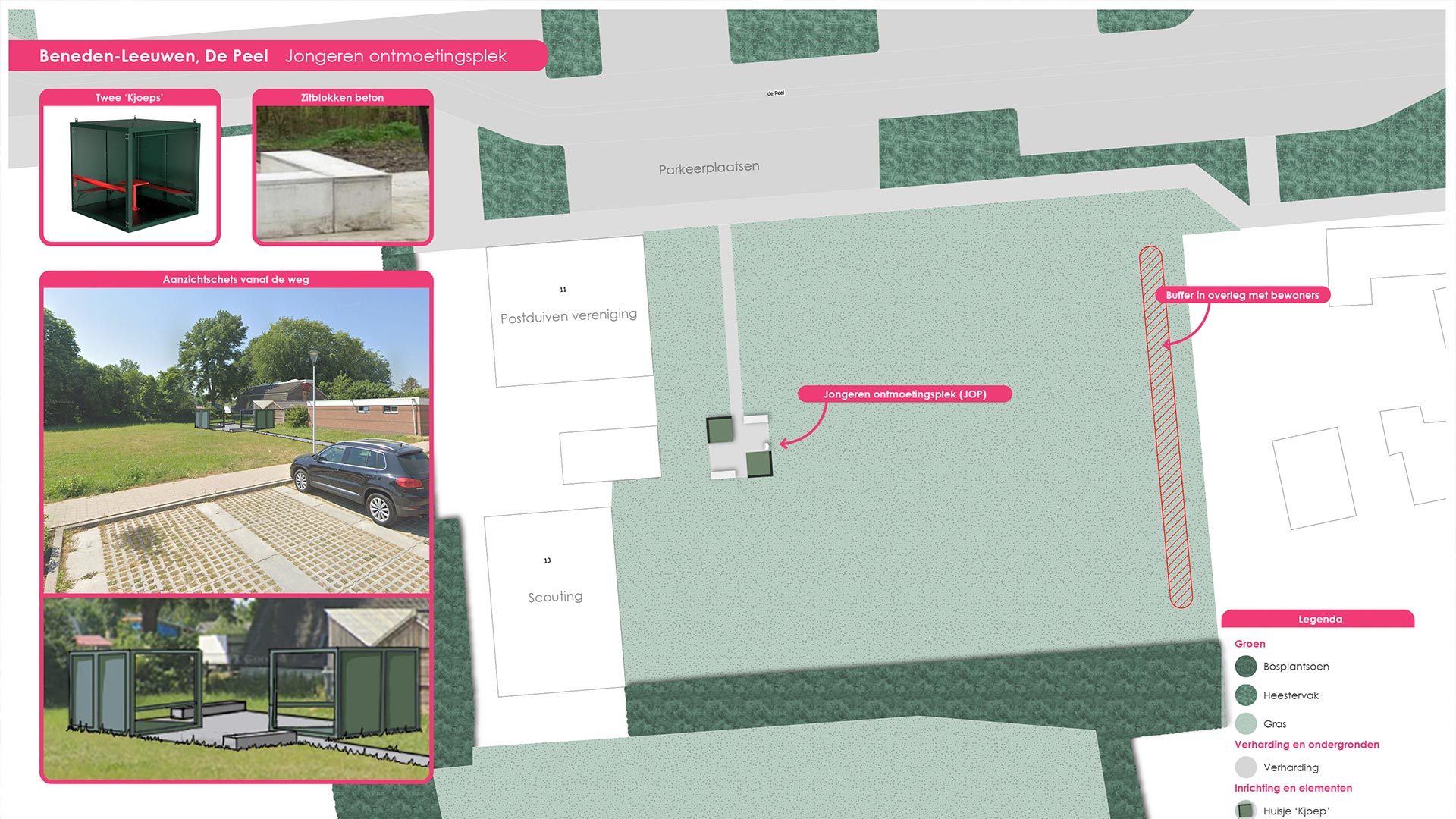 Habistad heeft met trots twee KJOEPS mogen realiseren in de gemeente Maas en Waal. Vanuit het project Ruimte voor de Jeugd werd duidelijk dat er behoefte is aan veilige en aantrekkelijke jongerenontmoetingsplekken. Daarom is aan De Peel in Beneden-Leeuwen een nieuwe JOP gerealiseerd: een moderne, toegankelijke plek waar jongeren elkaar kunnen ontmoeten, ontspannen en samen kunnen zijn. Met deze KJOEPS draagt Habistad bij aan een leefbare omgeving waarin ruimte is voor ontmoeting, verbinding en ontwikkeling van de jeugd.