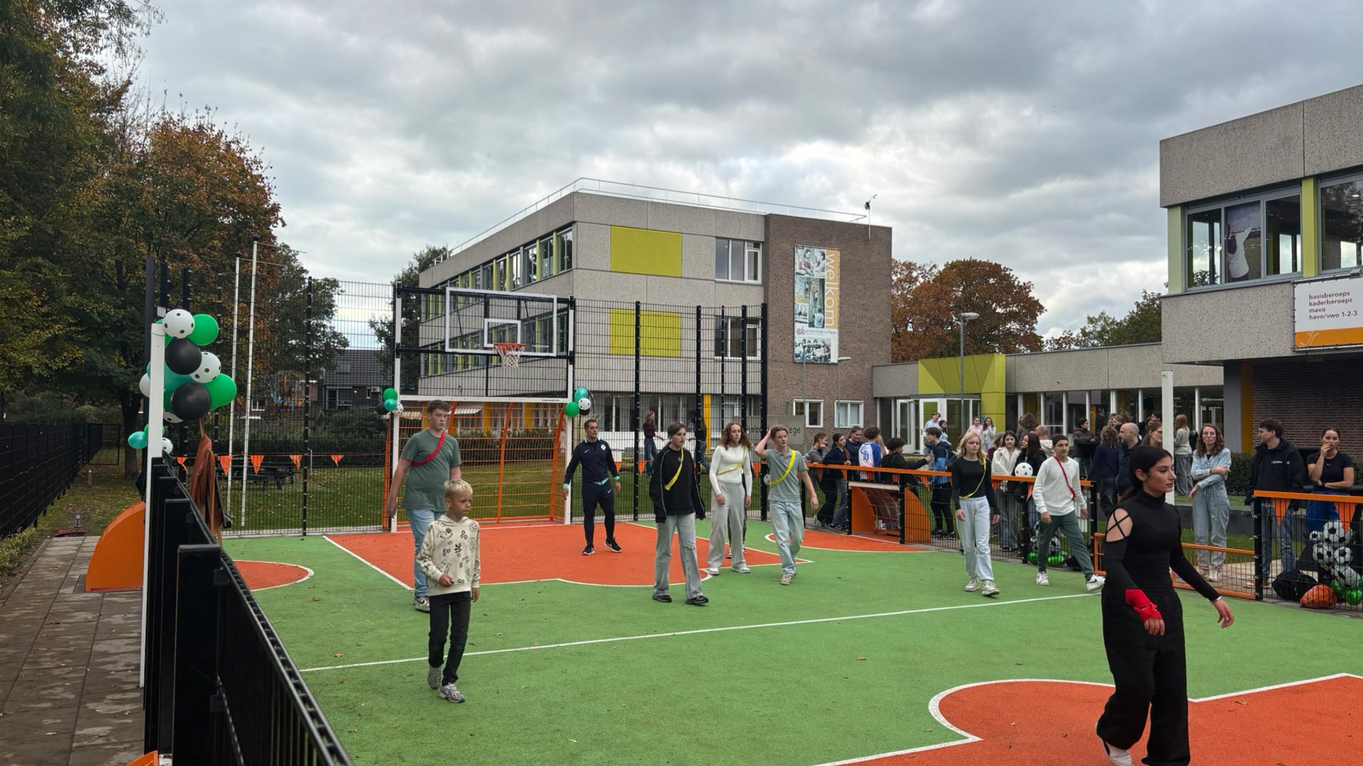 Deze multifunctionele sportkooi was vanaf de dag van openstelling al razend populair onder de leerlingen en de gymdocenten maken er dankbaar gebruik van.